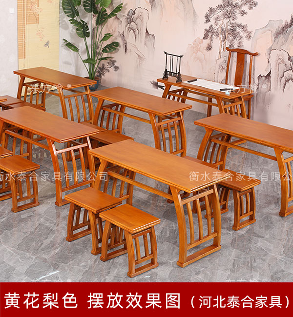 黄花梨色马鞍桌摆放效果图